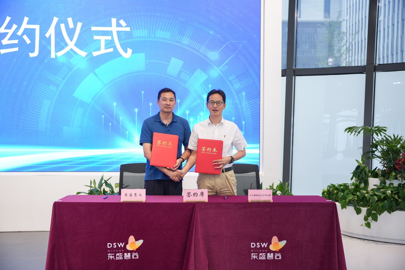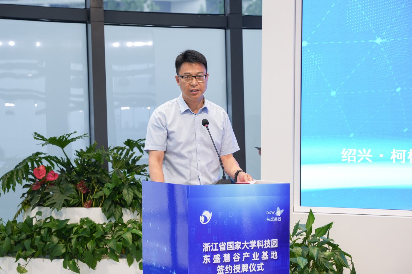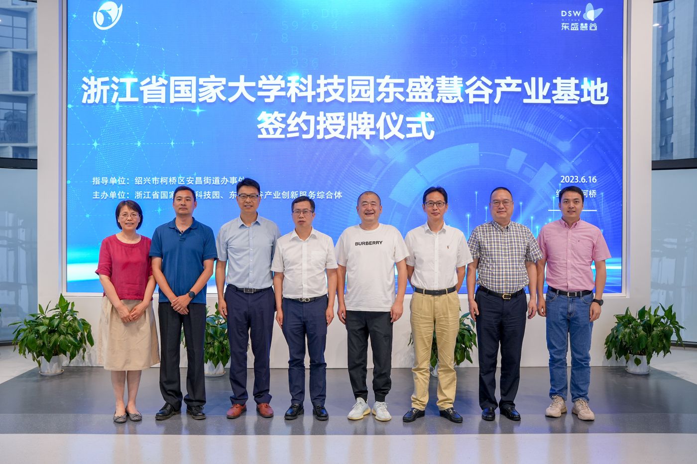 6月16日,浙江省国家大学科技园东盛慧谷产业基地签约授牌仪式在东盛慧谷顺利举行。柯桥区安昌街道党工委副书记陈立兴,东盛实业集团董事长徐卫东、副总经理张军,东盛慧谷总经理陈琪,东盛科技创新研究院院长金伟伟,浙江省国家大学科技园副总经理钱佩忠、陈根宝,办公室主任邢鸿燕出席活动。