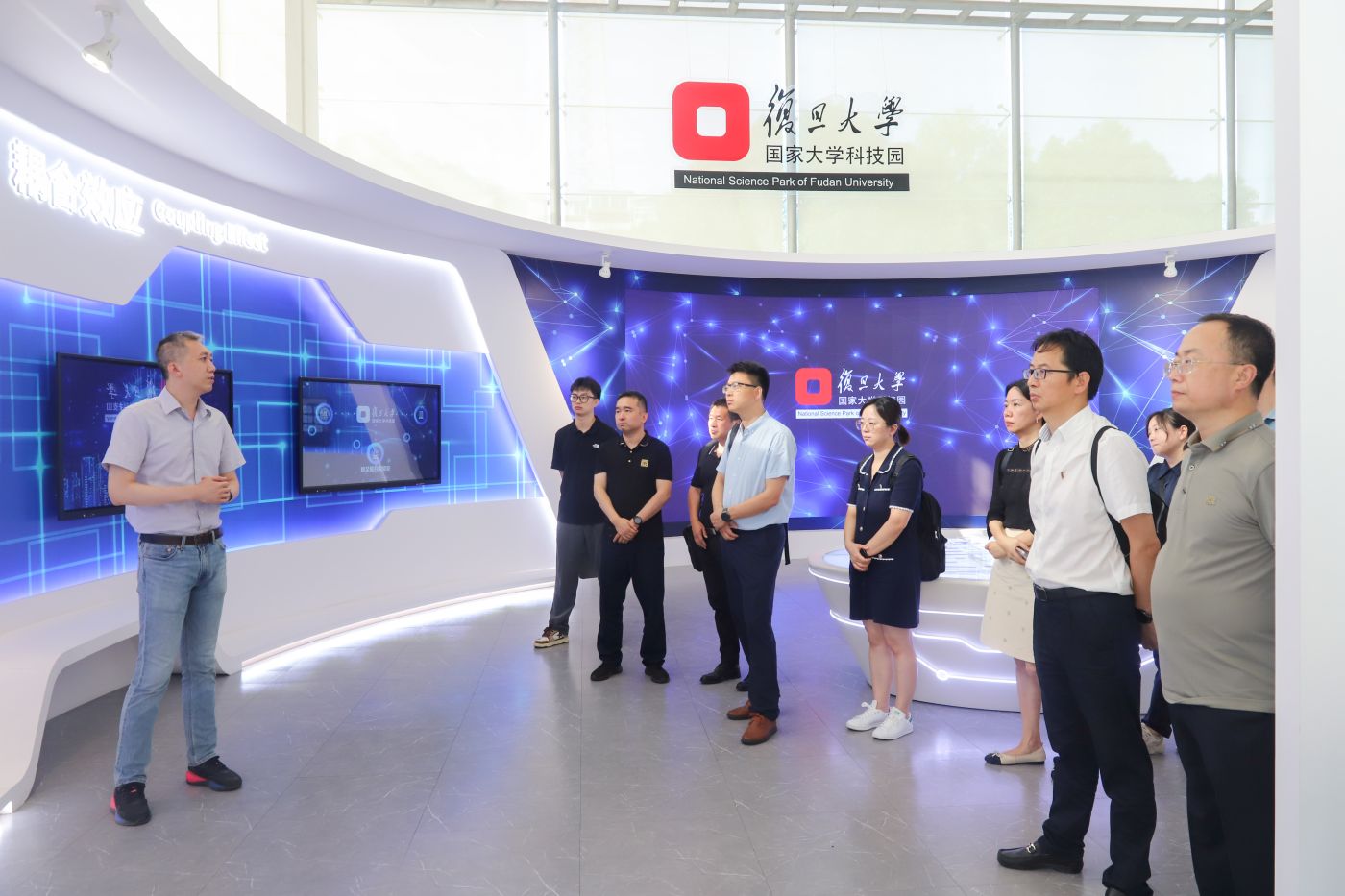 复旦大学国家大学科技园考察学习期间,复旦大学国家大学科技园总经理荆勇等接待了联盟一行。联盟一行参观了科技园展厅,初步了解了园区的发展历程、载体布局、功能定位、创新实践等并开展了座谈。