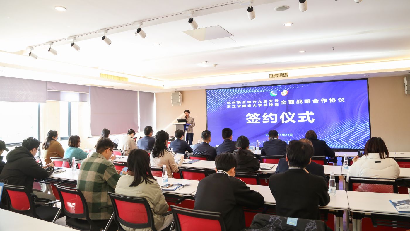 11月24日,浙江省国家大学科技园与杭州联合银行九堡支行举行战略合作签约仪式,结成全面合作战略伙伴。杭州联合银行九堡支行行长奚涛、副行长陈淑君,科技园副总经理钱佩忠、陈根宝等出席签约仪式。