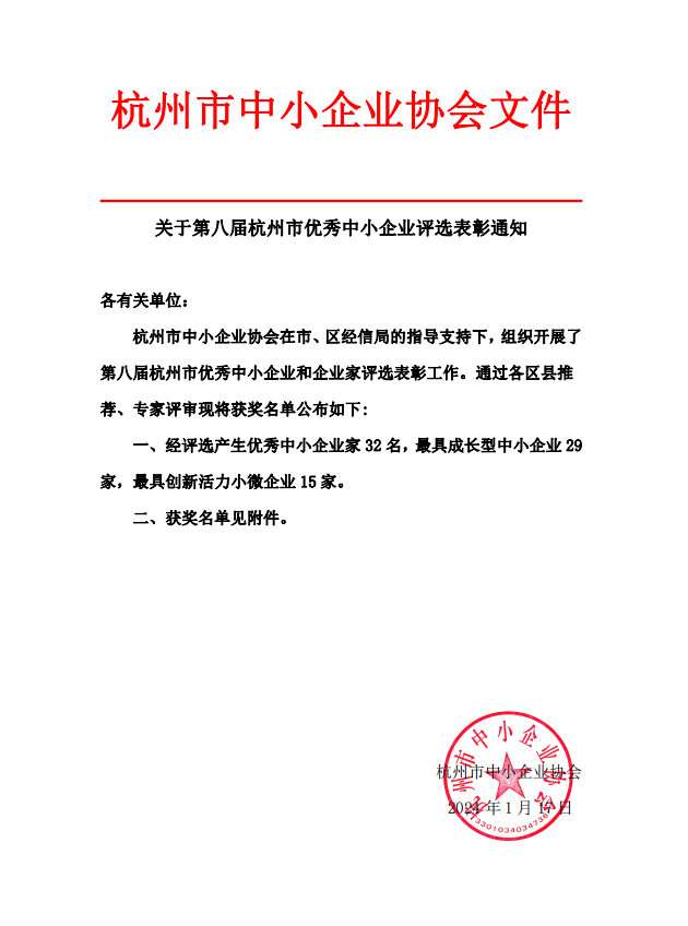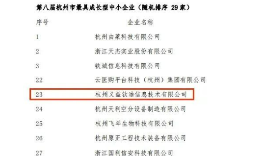 近日,杭州市中小企业协会发布《关于第八届杭州市中小企业评选表彰通知》,评选产生优秀中小企业家32名,最具成长型中小企业29家,最具活力小微企业15家。浙江省国家大学科技园企业杭州义益钛迪信息技术有限公司在此次评选中成功入选杭州市最具成长型中小企业。