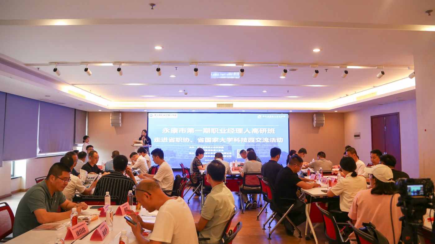 近日,永康市首期职业经理人高研班交流活动在浙江省国家大学科技园成功举办。浙江省职业经理人协会秘书长沈建、副秘书长沈家琪,永康市人社局人才开发和服务科科长黄兰美,永康市人力资源服务协会副会长吕俊赛,浙工大永康五金学院院长助理王炳忠,浙江省国家大学科技园总经理钱佩忠等出席会议。多家优秀企业家代表和永康市27位企业职业经理人参与了此次活动。