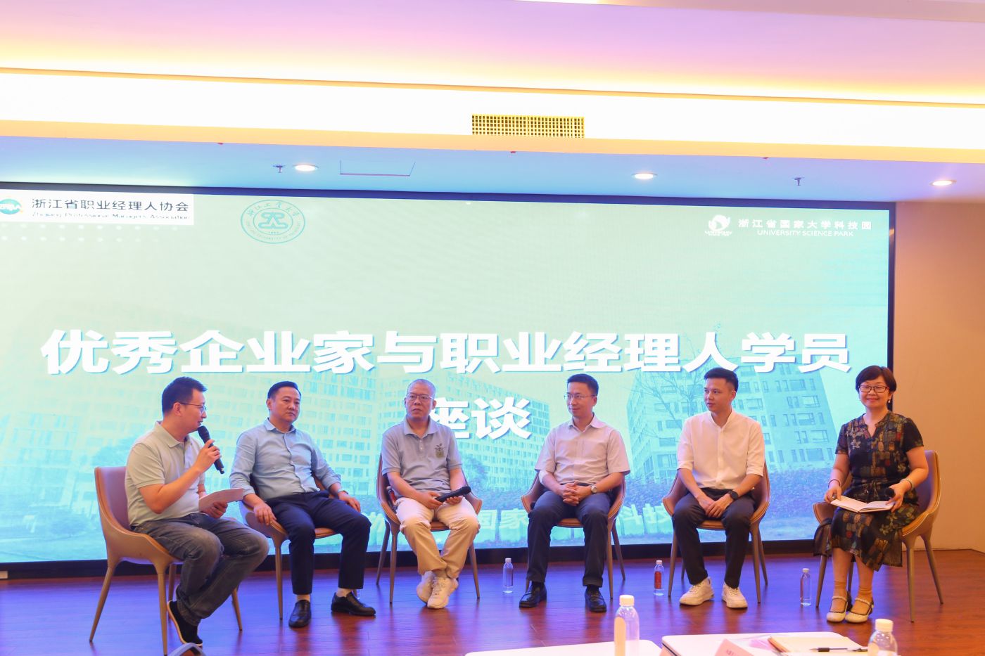 活动举行了优秀企业家与职业经理人学员座谈会。省职协秘书长沈建、富士康集团工业富联(杭州)有限公司总经理刘金钰、涂鸦智能信息技术股份有限公司副总裁张旻、双枪科技股份有限公司总经理徐洪昌、肯德基杭州大区优秀人力资源经理叶瑛作为代表与职业经理人学员进行座谈,深入讨论了“如何成为优秀的职业经理人”“新形势下的职业经理人如何快速适应”等议题。通过这些成功的职业经理人的分享,学员们对于如何在职场中立足和成长有了更为清晰的认识。