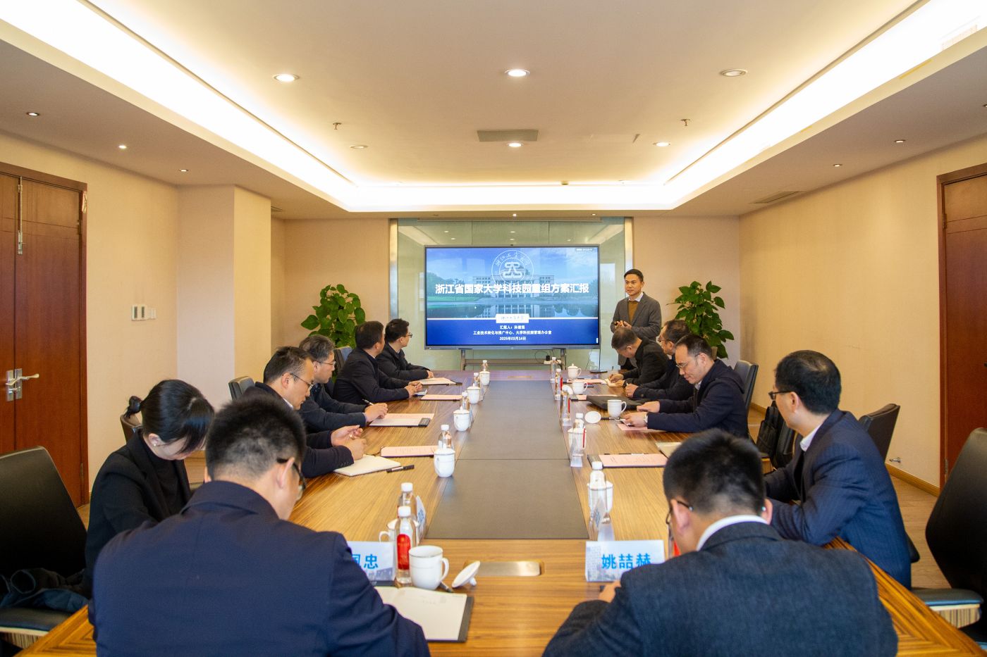 座谈会中,郑仁朝代表浙江工业大学对调研组表示热烈欢迎。孙建强汇报了国家大学科技园重组方案,就优化重组工作基础、存在问题、工作难点进行了重点分析。