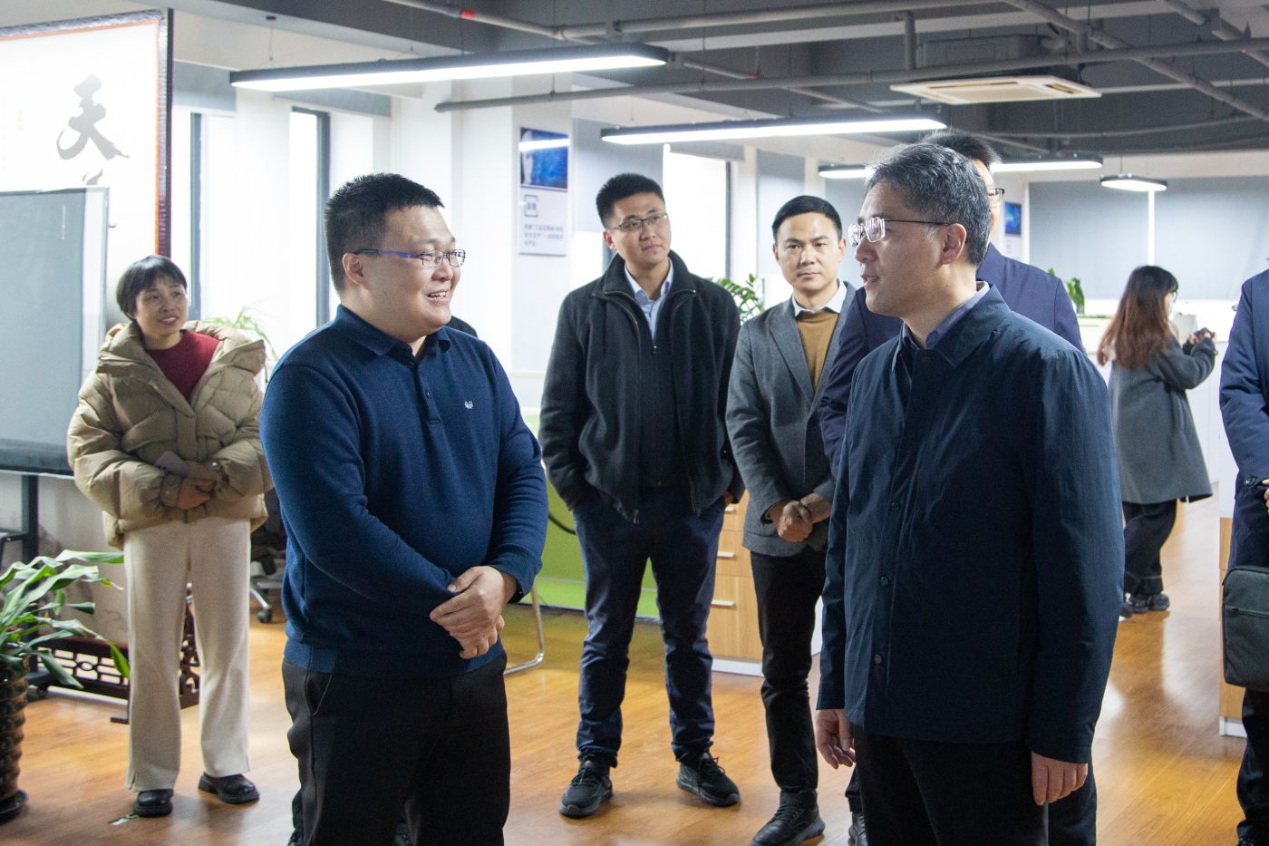 期间,调研组先后实地考察了园区数智物联创新实验、杭州义益钛迪信息技术有限公司、智创控安(杭州)科技有限公司,详细了解科技园发展、科技成果转化平台建设、科技企业孵化等情况。实地考察中,陈峰与实验室及企业负责人进行了深入交流,了解了实验室运行、制度管理、服务对象,企业核心产品、校企合作、政策兑现等具体情况。