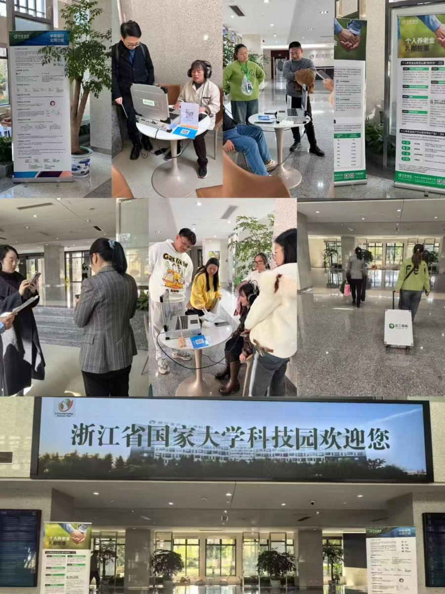近日,浙江省国家大学科技园联合中宏保险公司在园区1号楼A座大厅下沉式广场举办了两场智能健康检测活动,吸引了众多园区企业员工的体验参与。