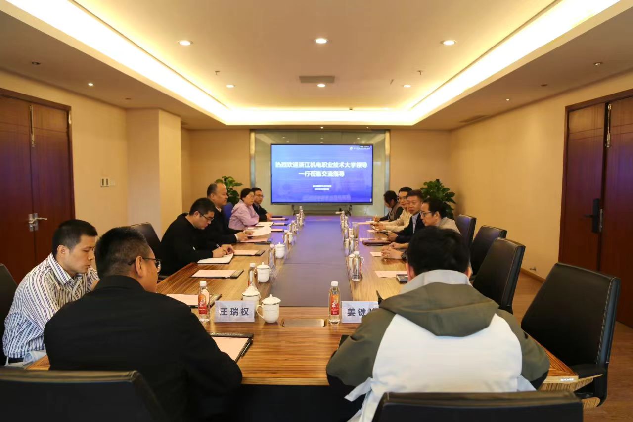 2025年10月30日下午,浙江机电职业技术大学党委委员、副校长戴光麟率学校科研处、智能制造学院、人工智能学院、数字商贸学院、创意设计学院等学院负责人一行,赴浙江省国家大学科技园调研交流。科技园董事长彭松波、副总经理陈根宝等参与接待并座谈。