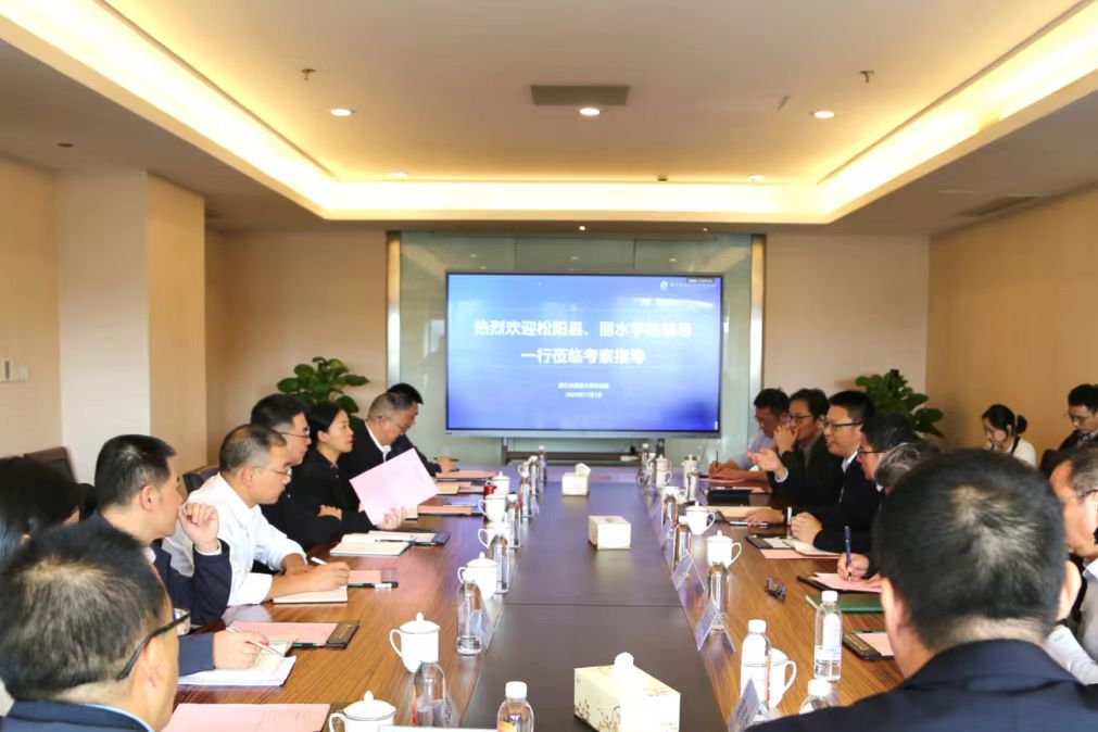 2025年11月1日,丽水学院党委书记李俊杰与松阳县委书记梁海刚带领代表团一同来到浙江省国家大学科技园进行调研交流,共同探讨“校地”合作与高校科技成果转化的新路径,浙江省国家大学科技园总经理钱佩忠、副总经理陈根宝等陪同调研并座谈。