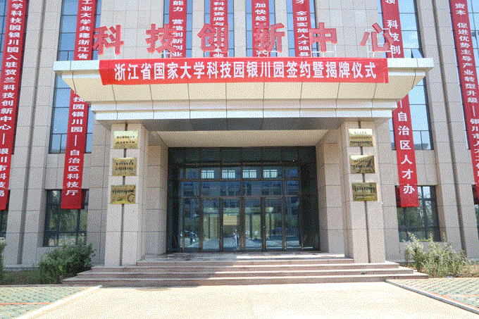 浙江工业大学党委书记梅新林,浙江工业大学副校长李小年,自治区科技厅副厅长郭建川,银川市委常委、贺兰县委书记李郁华,银川市副市长李守银一起为浙江省国家大学科技园银川园揭牌,浙江省国家大学科技园总经理邵林和银川科创中心主任朱恒廷共同签署了协议。浙江工业大学相关部门和浙江省国家大学科技园领导、贺兰县四套班子相关领导参加签约揭牌仪式。