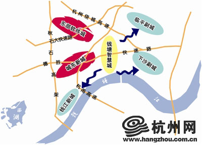 长远看,钱塘智慧城总体布局为“一城两翼三联动”,即以钱塘智慧城为核心,辐射东部软件城、城东新城两翼发展,与钱江新城、临平新城、下沙新城联动发展。