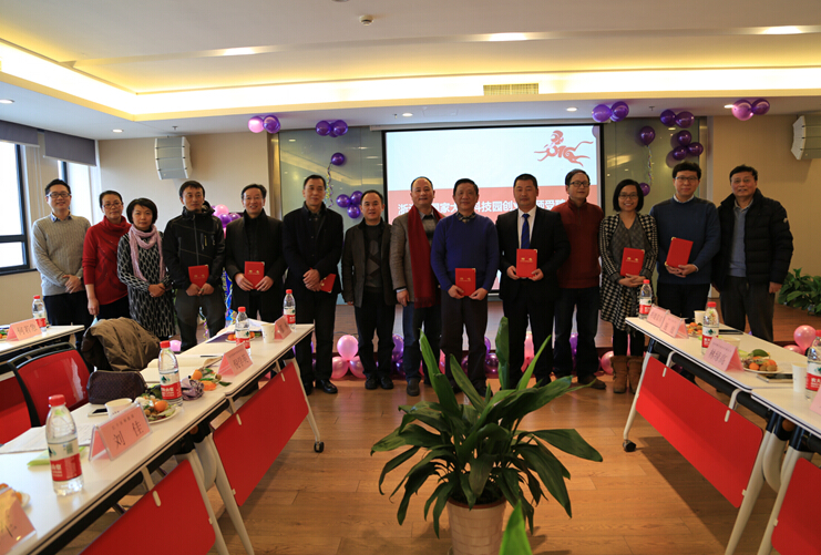 园区副总经理何若象宣读第五批浙江省国家大学科技创业导师名单:浙江工业大学施放教授、浙江畅尔智能装备股份有限公司董事长林绿高先生、杭州贝嘟科技有限公司(衣邦人)创始人兼CEO方琴女士、杭州千石科技有限公司总经理姜力强教授、杭州义益钛迪信息技术有限公司总经理吴国驭先生、杭州开一化工技术有限公司总经理程榕教授、杭州和山文化艺术有限公司总经理孙以栋教授