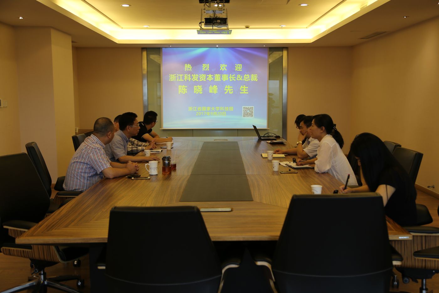 9月20日上午,浙江科发资本董事长&总裁陈晓峰先生访问园区,总经理邵林邀请了杭州钱塘智慧城管委会副书记刘继明、人才科技局局长张健、浙江臻弘股权投资基金管理有限公司总经理朱耀进等与陈晓峰先生一起,就如何利用资本扶持科技企业发展等进行了探讨。