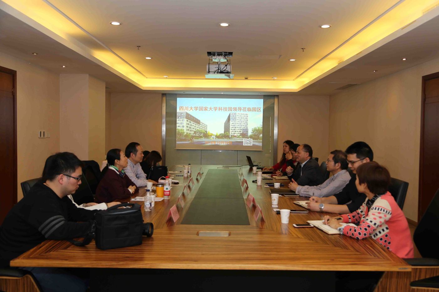 舒大勇副总经理介绍了四川大学国家大学科技园为科技创新提供特色服务,并分享了根据自身特色摸索出的科技管理服务运营经验和几种科技服务合作模式。最后,双方就科技园管理运营、投融资服务等事宜展开了热烈的讨论。