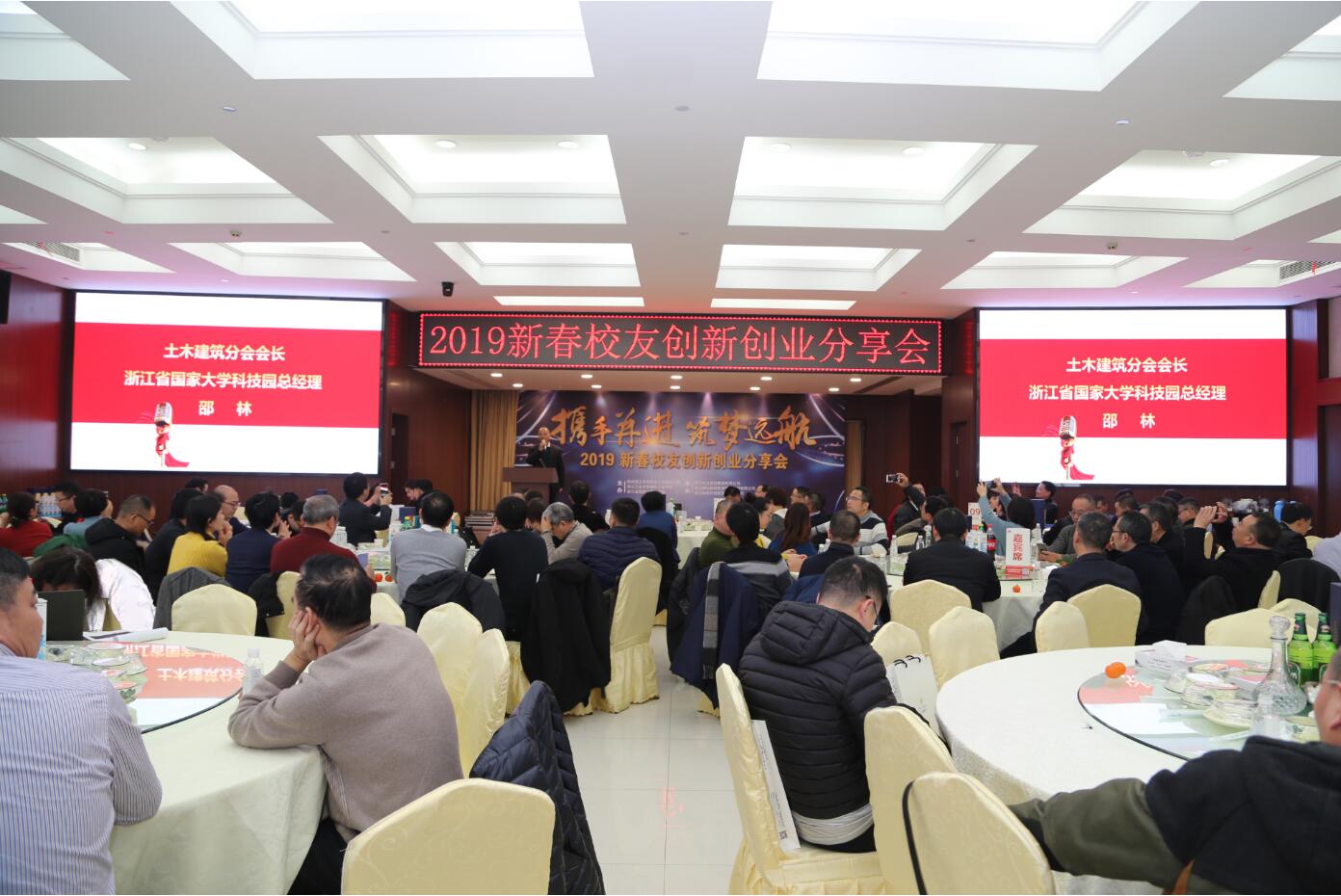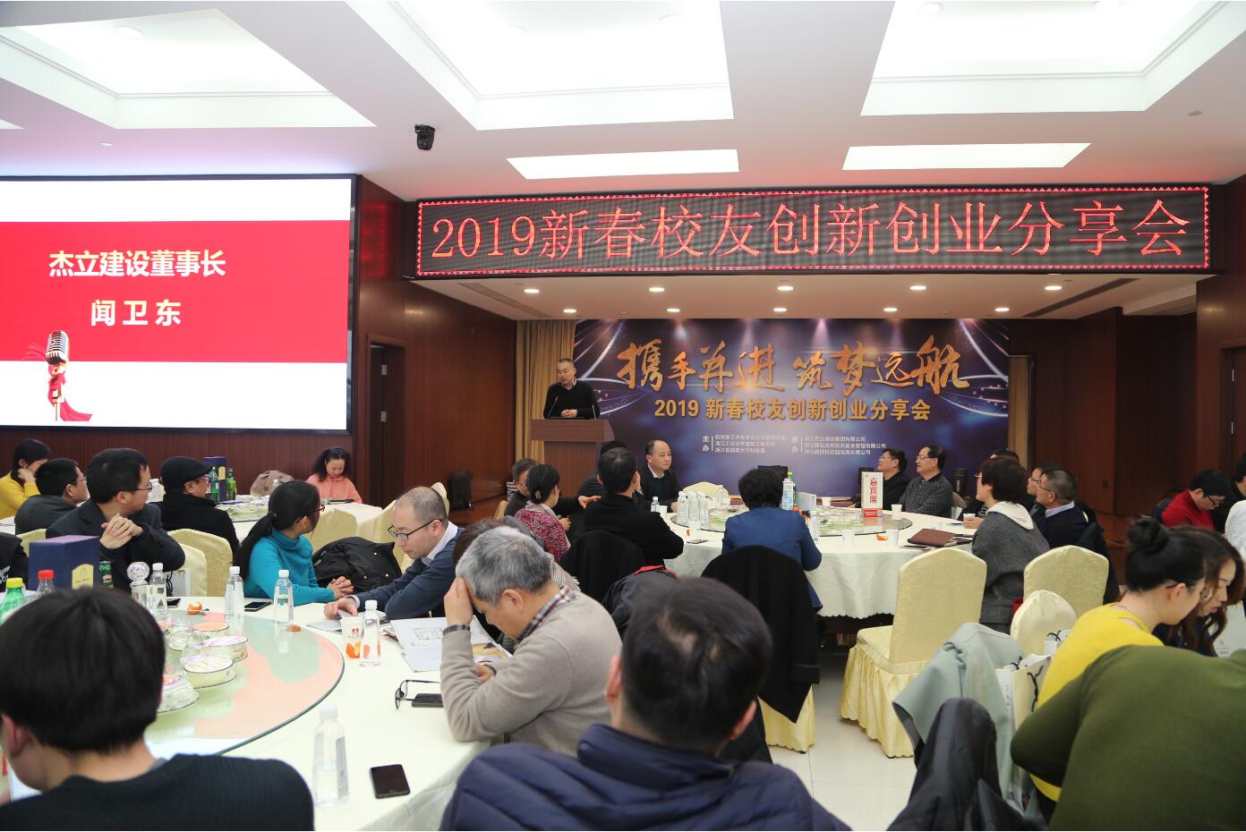 2月23日下午,春雨初歇,春风徐徐,杭州浙江工业大学校友会土木建筑分会联合浙工大建筑工程学院、浙江省国家大学科技园在校友企业杰立建设集团,成功举办了2019新春校友“携手并进 筑梦远航”创新创业分享会。浙江工业大学党委书记、土木工程资深专家蔡袁强,浙江工业大学党委委员、副校长、校友总会秘书长虞晓芬,浙江工业大学校友总会副会长原浙江工业大学党委副书记何智蕴,浙江工业大学校友总会副秘书长赵敏详、陈根宝、建筑工程学院新老领导班子成员应四爱、陈前虎、许四法、彭国军、樊良本、郑建军、赵滇生、杭州浙工大校友会及所属各分会、以及绍兴、安吉、温州、龙泉等外地校友分会领导李培土、何承春、张天乐、郭秀良等校友、杭州浙江工业大学校友会土木建筑分会会长、浙江省国家大学科技园总经理长邵林校友、浙江杰立建设集团董事长、总经理闻卫东校友以及近200余位校友代表相聚一堂。会议由土木建筑分会副会长、杭州历史建筑保护办公室王少媚校友和就职于融创集团的吴狄龙校友及就职于蓝城集团汪冰聪校友联袂主持。
