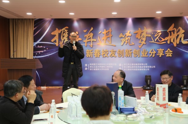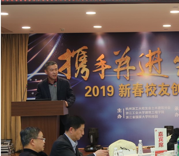 首先,浙江省国家大学科技园总经理、杭州校友会土木建筑分会会长邵林校友向全体到会校友致以新年的新春问候,感谢再次承办创业分享会的校友企业杰立建设集团和分会秘书处对本次活动的精心策划和筹备。邵林会长和与会校友分享了过去一年内校友工作取得的业绩,期盼在创新创业的征程中,校友和校友企业相互鼓励、相互借鉴,以浙工大牵头的浙江省国家大学科技园平台将一如既地将为广大校友提供更多优质的服务和更丰富的高校资源,期待校友企业追逐梦想,成为行业标杆,为母校争光,为校友添彩。祝愿母校在冲击双一流高校的征途中取得更好的成绩,祝愿学院在教学、科研、人才培养、专业建设、学科建设等方面在行业中收获更大的影响力,祝各位校友企业发展壮大,更上一层楼,祝各位校友及尊敬的老师们身体健康、万事如意、幸福吉祥!
