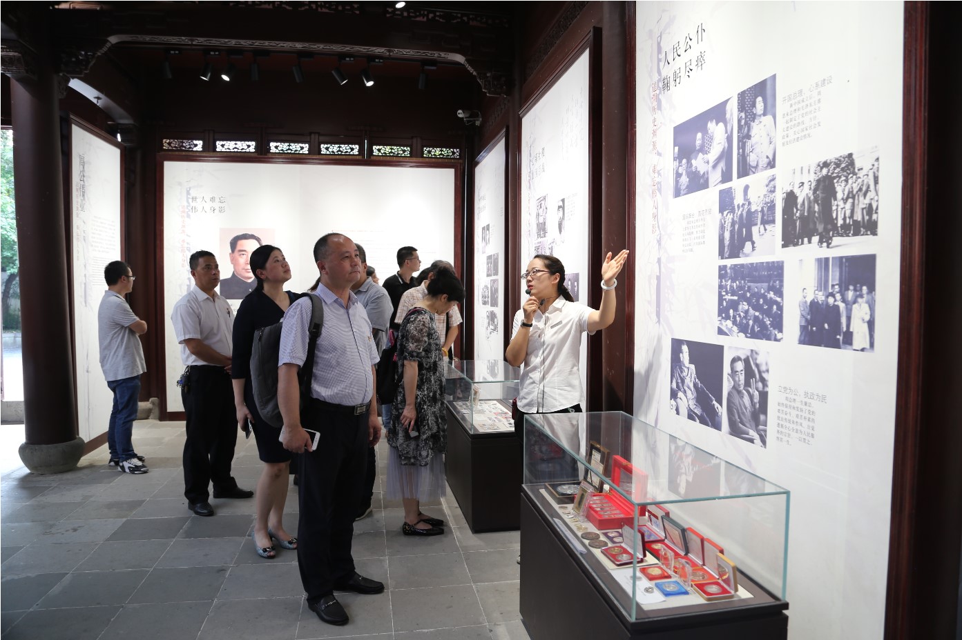 首先,在纪念室庭院周恩来铜像前,全体党员面向鲜艳的党旗,在大学科技园党支部书记邵林带领下,重温了入党誓词。然后,来到纪念室展厅,讲解员向大家详细介绍了周恩来总理先后五次视察梅家坞,将梅家坞作为指导全国农村工作的联系点,关心和指导梅家坞的生产和建设的历史事迹,满满珍贵的史料、照片和实物都是周恩来总理勤政为民、廉洁从政、克己奉公精神风范的写照。