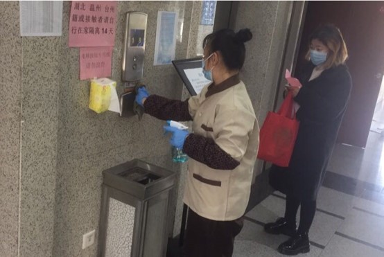 物业管理人员消毒电梯按钮