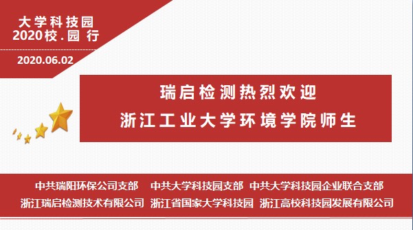本次“大学科技园2020校·园行”活动由浙江工业大学环境学院、浙江省国家大学科技园、浙江瑞启检测技术公司联合发起,园区相关企业党支部共同参与。在6月5日世界环境日来临之际,环境学院还将把本次活动内容制作成主题活动视频,云分享给在校大学生。