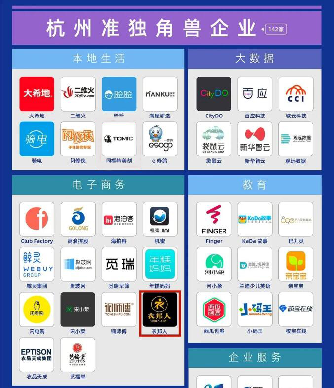 园区企业杭州贝嘟科技有限公司旗下互联网+服装定制平台衣邦人荣登独角兽企业榜单,已是连续两年获此殊荣。截至2020年6月12日,杭州共有独角兽企业31家,准独角兽企业142家,所有企业总估值超3100亿美元。