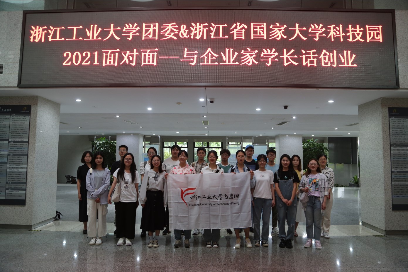 2021年6月18日,园区与共青团浙江工业大学委员会共同举办了“2021面对面—企业家学长话创业”活动,浙江工业大学“飞鹰—学生骨干培养工程”以及创新创业中心(IEC)20多位学员来到园区学习交流。