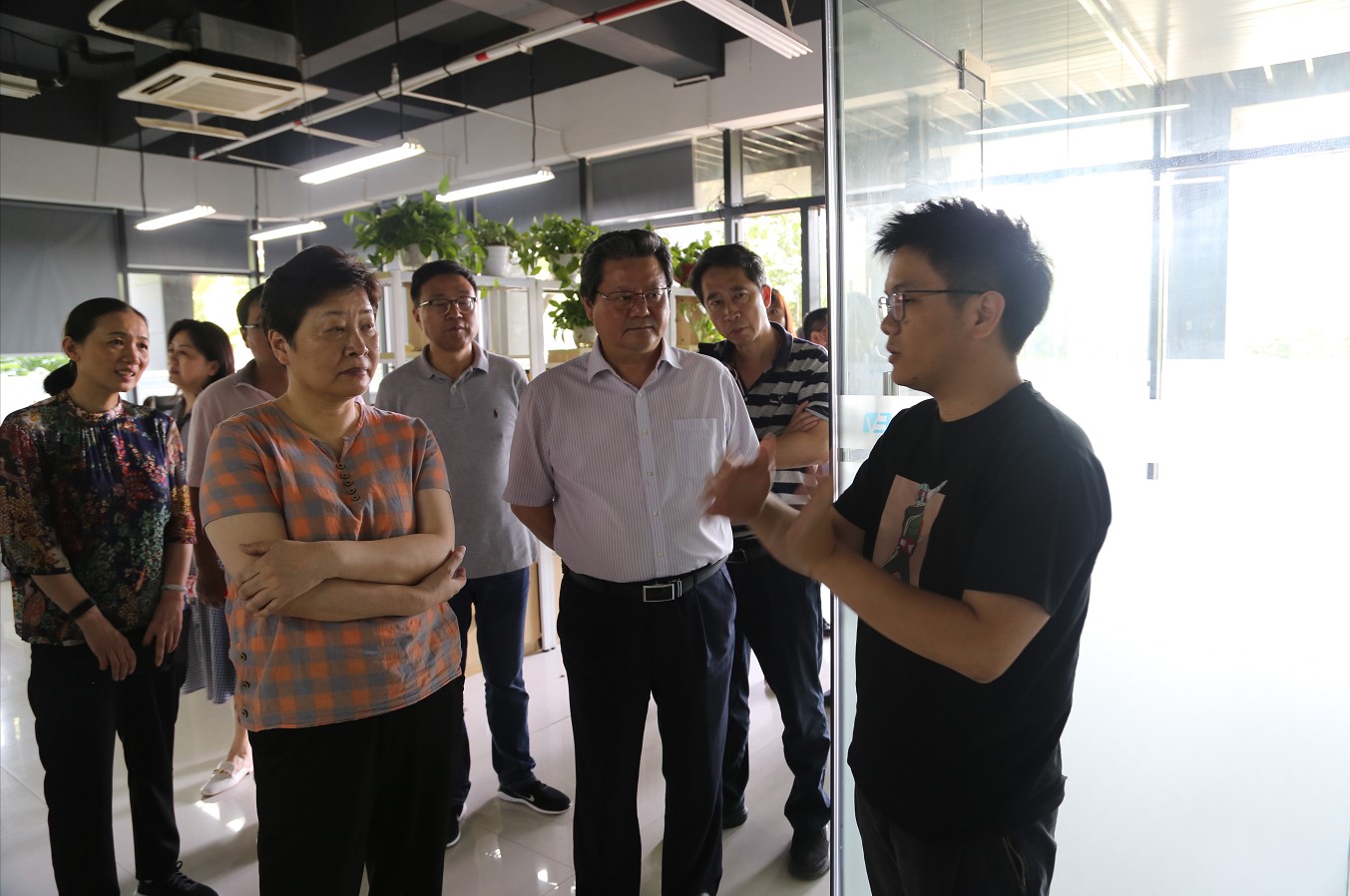 邵林总经理向考察团一行介绍了园区作为科技创新服务平台的建设、运行以及与地方经济互动的情况,陪同考察团参观了园区企业义益钛迪、视杏科技等企业,了解企业的产学研、人才引进等情况。