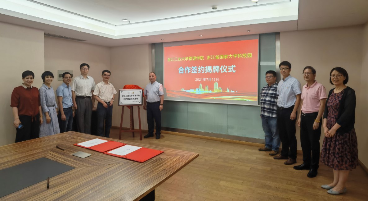 7月15日,为了进一步发挥浙江工业大学管理学院人才优势,推进科技成果转化,高新技术企业孵化,完善创新创业人才培养机制,优化创新创业生态系统,园区与浙江工业大学管理学院共建创新创业实践基地签约揭牌。