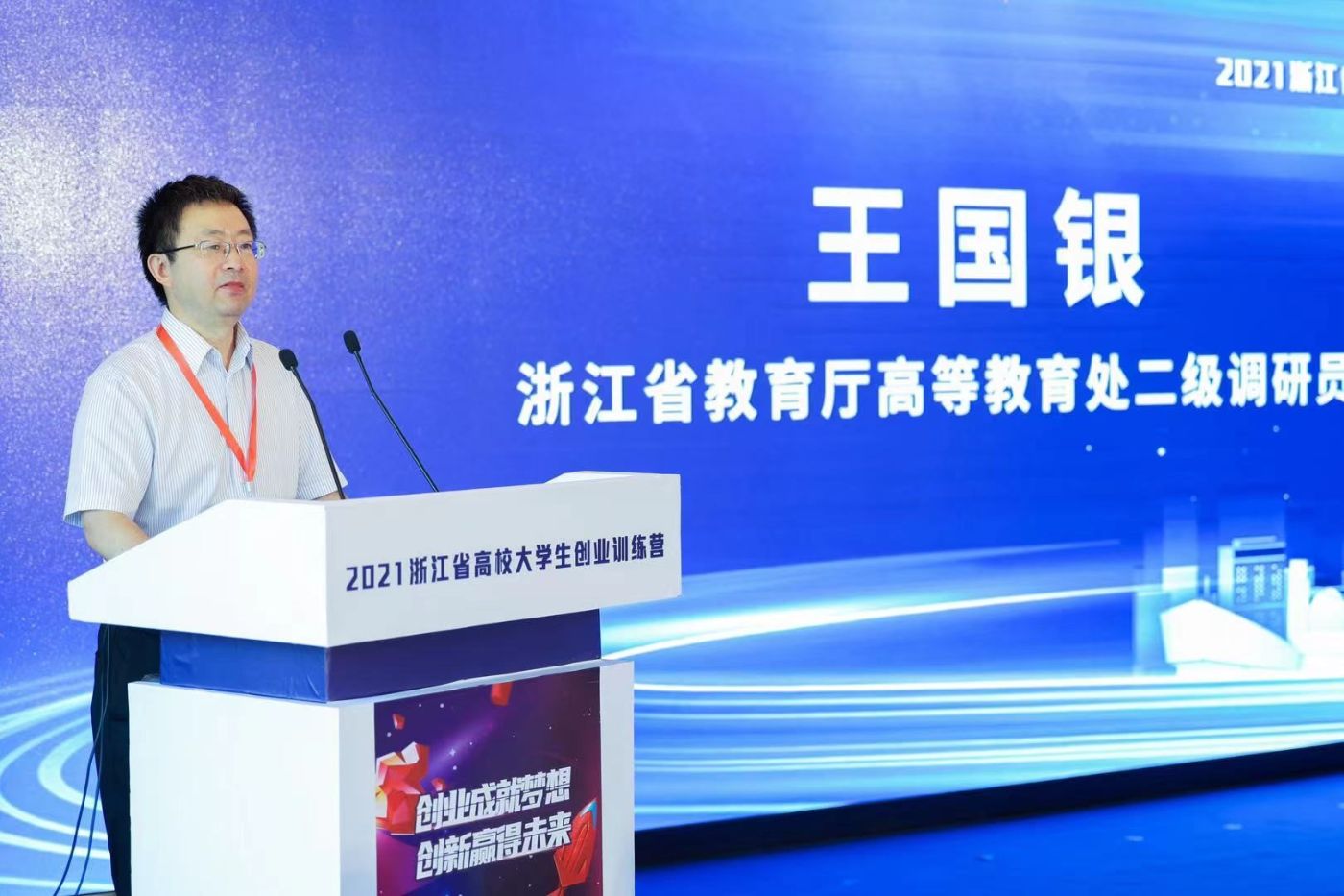 省教育厅高教处王国银调研员在讲话中指出, “互联网+”大学生创新创业大赛是高校深化创新创业教育改革的重要抓手,是培养“互联网+”时代创新人才的重要途径。依托大赛,将高校的智力、技术、文化资源与企业和投资机构的金融、市场、社会资源精准对接;促进不断完善科技成果转移转化的政策环境,激活高校专利资源,鼓励师生共创,让“躺”在实验室的科研成果真正产生市场价值和社会价值。他希望第七届浙江省“互联网+”大学生创新创业大赛选拔赛决赛选拔的团队再接再厉,在创业训练营继续加油学习提高,明晰知识结构和能力的不足与差距,在国赛上取得优异成绩,祝愿新时代青年学子们“敢闯会创”,将青春梦融入伟大的中国梦,在创业路上跑出加速度,在发展路上闯出新天地。