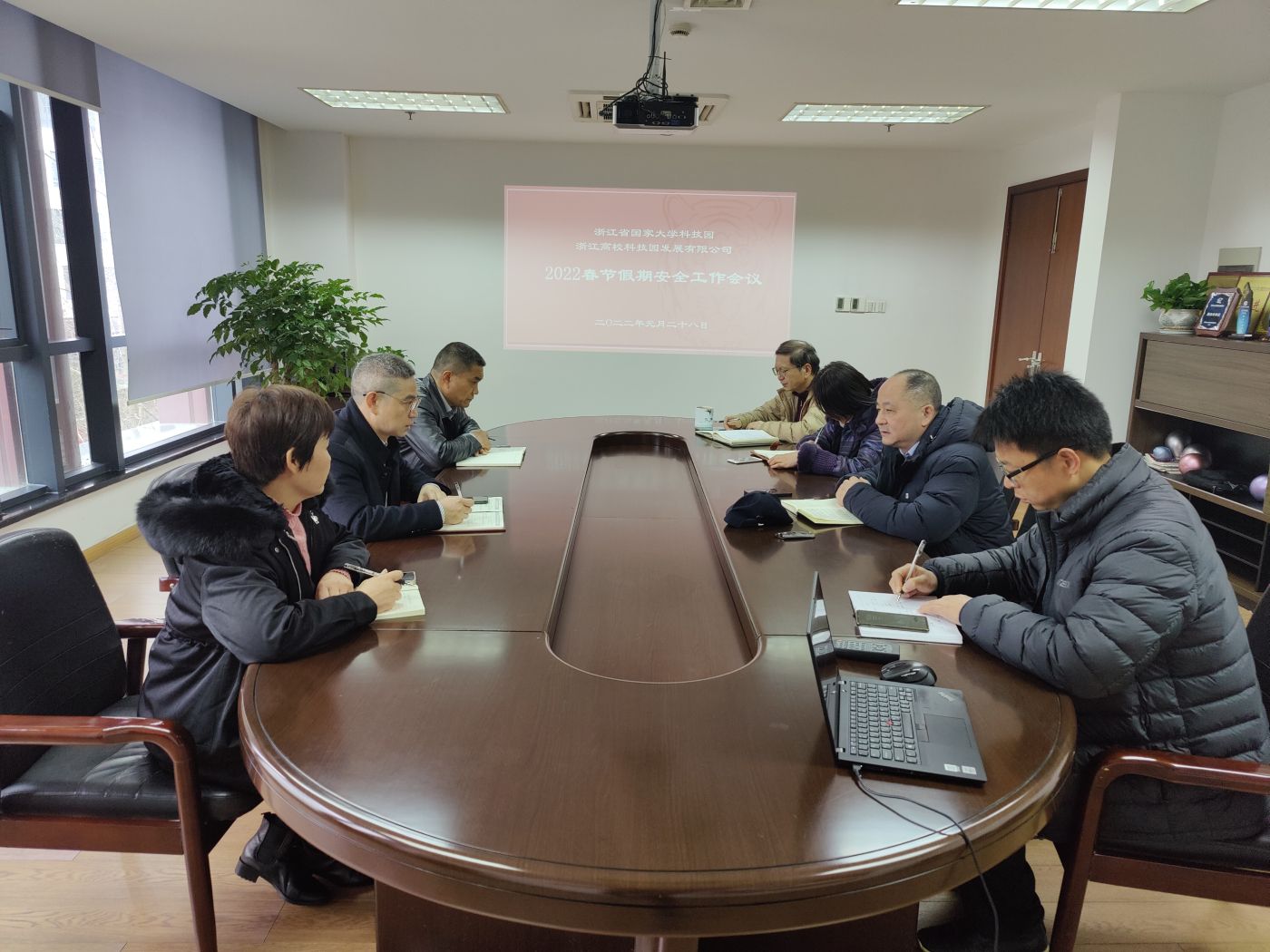 元月28日上午,园区召开春节假期安全工作会议,总经理邵林,副总经理钱佩忠,创业保障部负责人、物业服务中心负责人等出席会议。会议听取了物业服务中心负责人对假期园区安全工作的部署,总经理邵林强调,决不能松懈假期安全工作,要求认真落实地方政府的防控要求,做好值班值守,做好各项应急预案,积极防范和应对低温雨雪冰冻天气。会上还交流了物业服务中心值班人员后勤保障等情况。