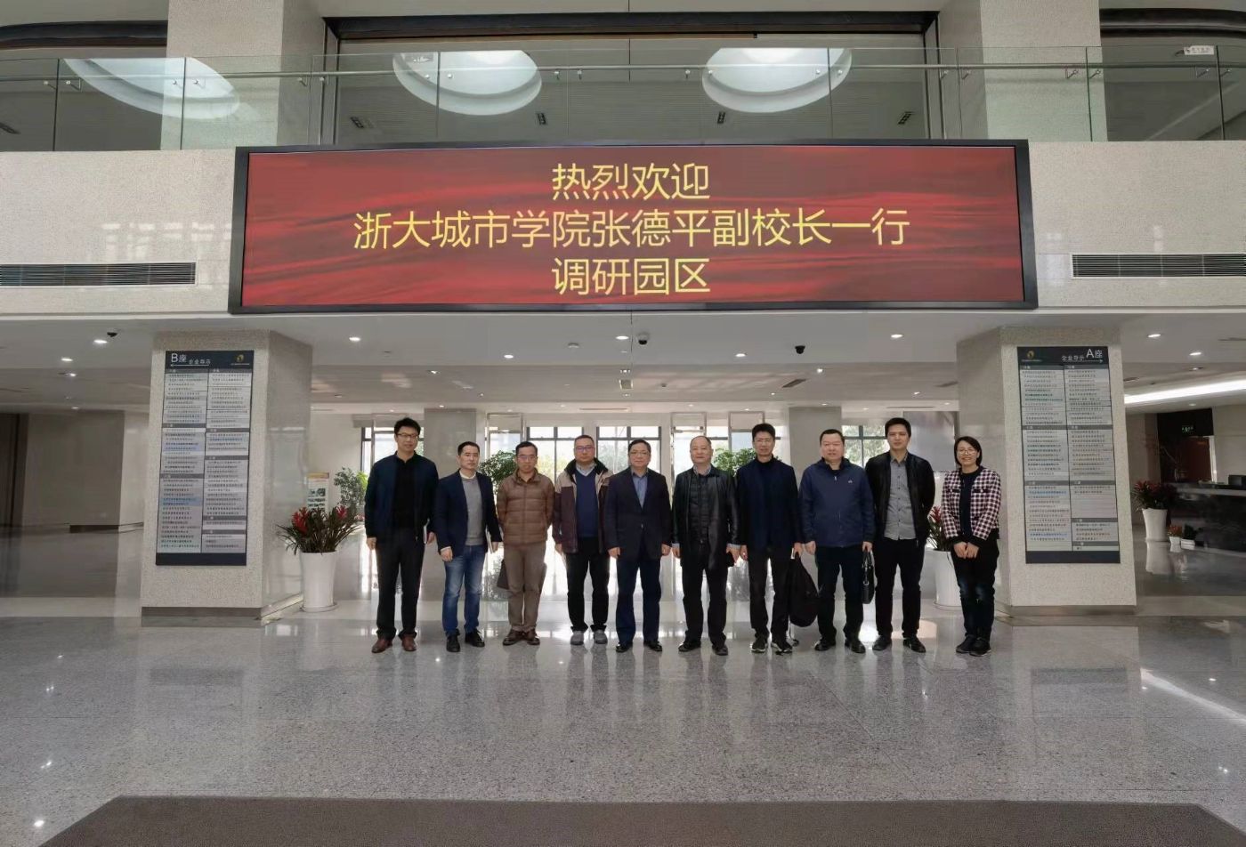 近日,浙大城市学院党委委员、副校长张德平副率队赴园区调研,大学科技园总经理邵林、副总经理钱佩忠接待了来访的嘉宾们。
