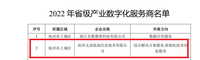 日前,浙江省经济和信息化厅发布《关于印发2022年省级产业数字化服务商名单的通知》,确定了今年省级产业数字化服务商名单。园区企业义益钛迪上榜!