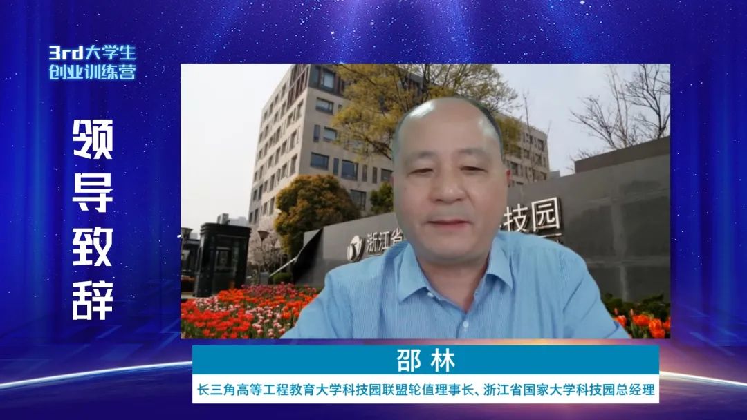 长三角高等工程教育大学科技园联盟轮值理事长、浙江省国家大学科技园总经理邵林,上海理工大学国家大学科技园总经理荆勇出席了开营仪式并致辞。