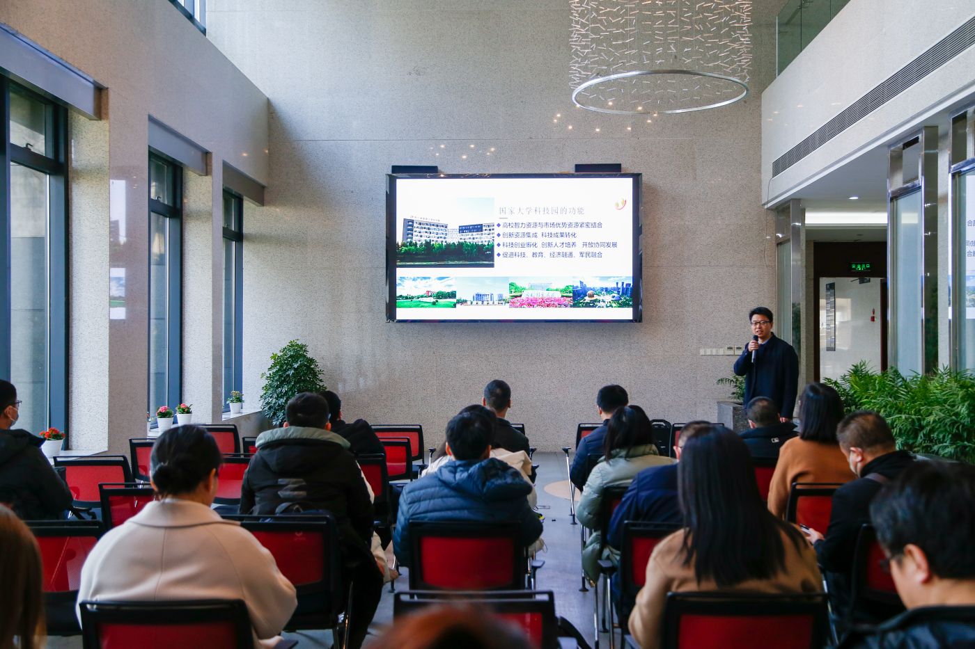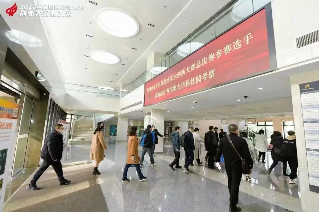大赛期间,选手们参观了浙江省国家大学科技园。园区副总经理(主持)钱佩忠向选手们介绍了科技园在双创服务平台建设、科技成果转化、助推企业高质量发展、创新创业人才培养方面的工作成效以及园区的创业孵化服务体系,分享了园区孵化培育案例,并邀请各位选手来到浙江省国家大学科技园创业。